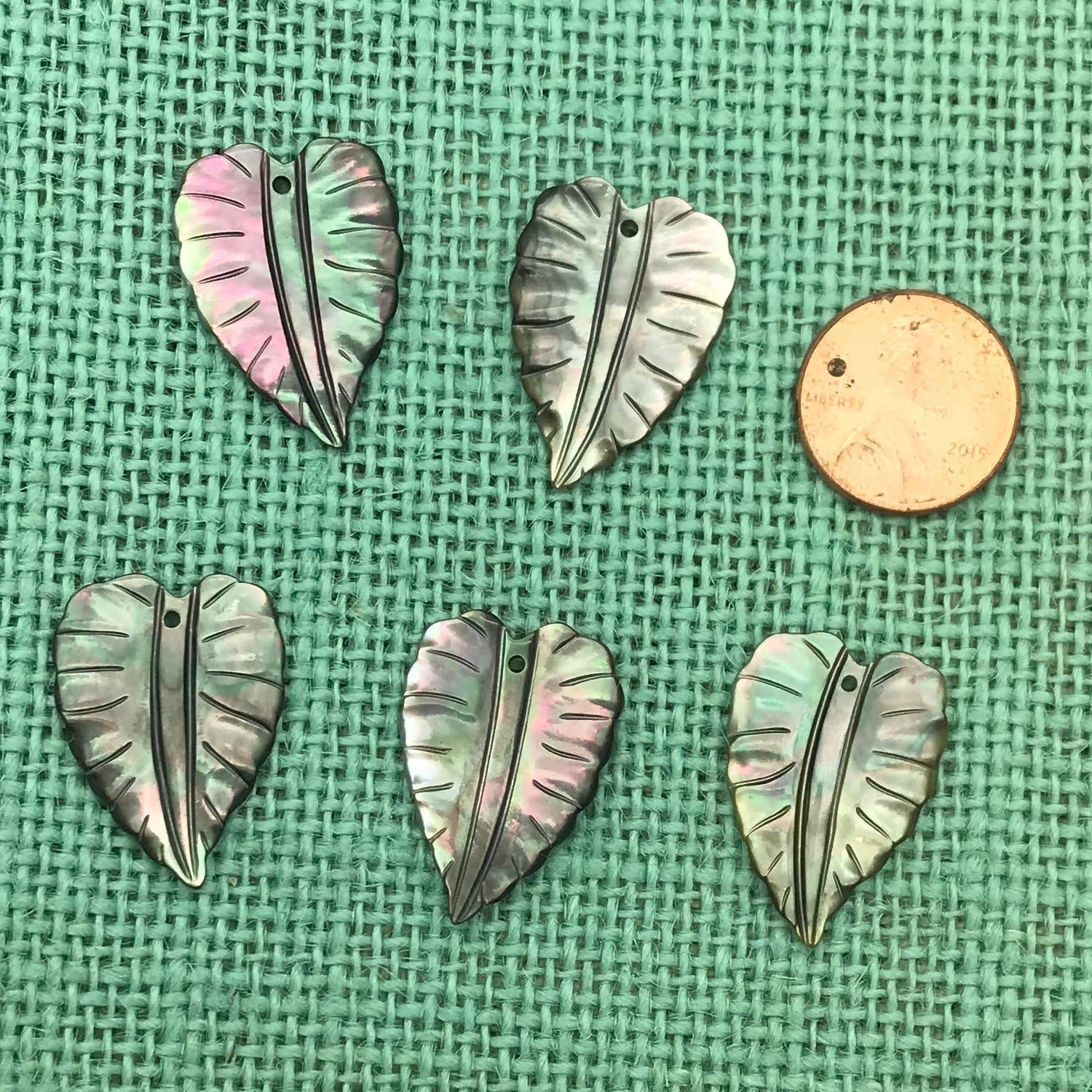 26x18mm paua shell taro leaf charm